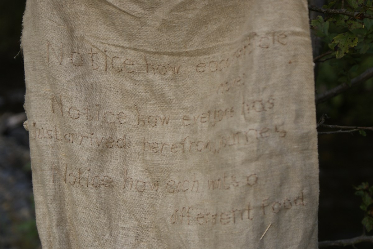 notice Published 05/05/2013 at 3872 × 2592 in melin medi ← Previous Next → embroidered text onto linen cloth; melin medi 2010