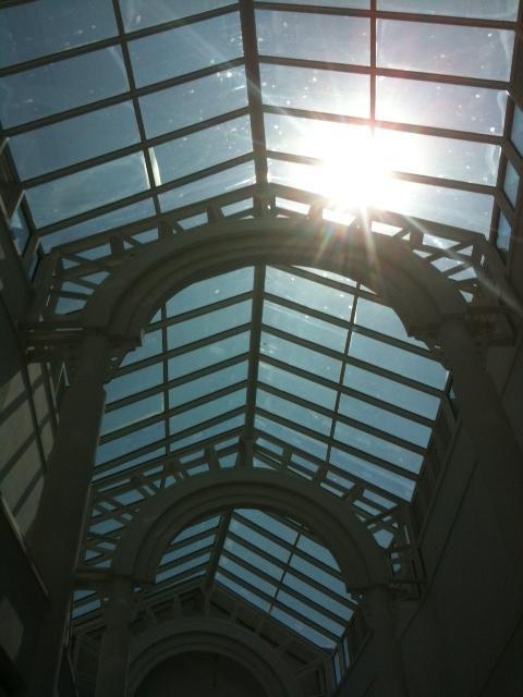 stood still as a live statue and took five films of the sunny cloudy sky from inside the centre through the arcaded roof. and went outside to soak up the real warmth.