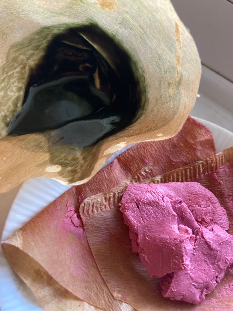 i also tested unspun pure flax, from the gg 21 crop. i talked about dyeing prior to spinning this week and so i had to try! unmordanted and unbleached. the pink is beautiful. the scabious may be .. it’s still wet. i am impatient 😆