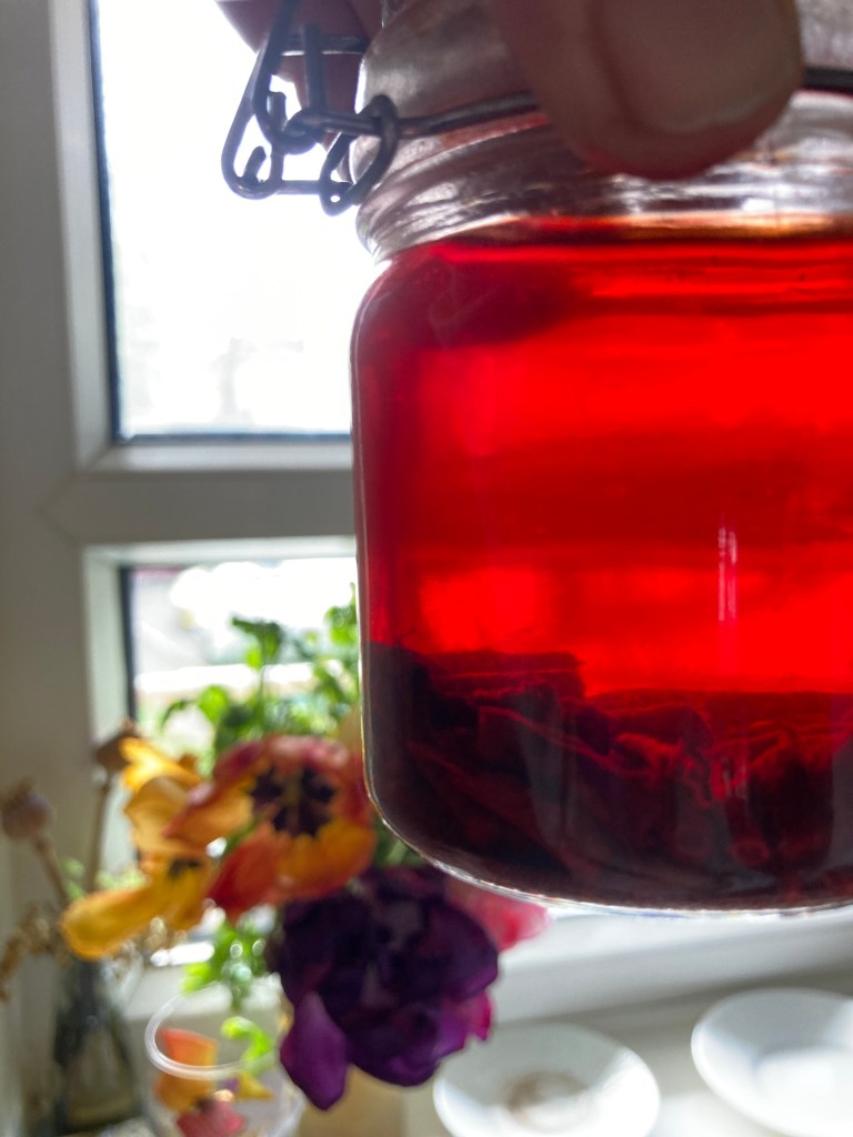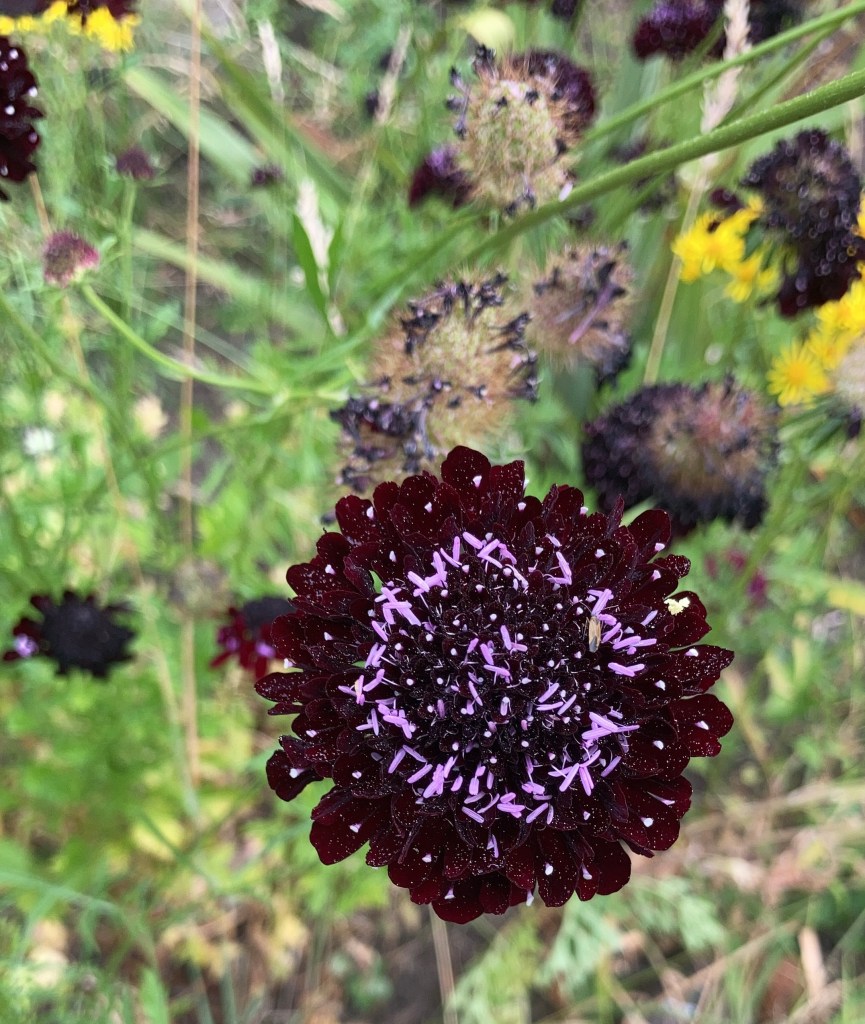 i also weeded all the rest, planting the seeds of black cat scabious saved from last years’ amazing results. i had lots of flower heads saved too so they’re soaking on the windowsill now alongside the madder root.