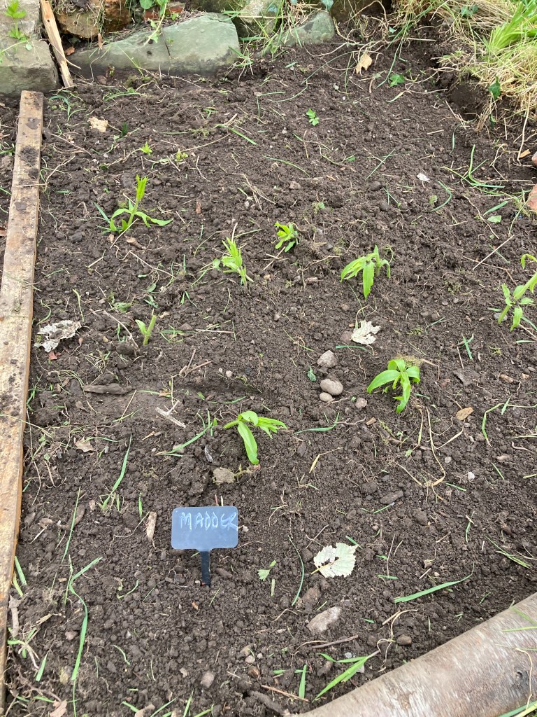This week i started again on the dye beds at gg . the madder was still there, just coming through. so that’s been weeded and split and fed. i dug up a little for tests and it’s already good.