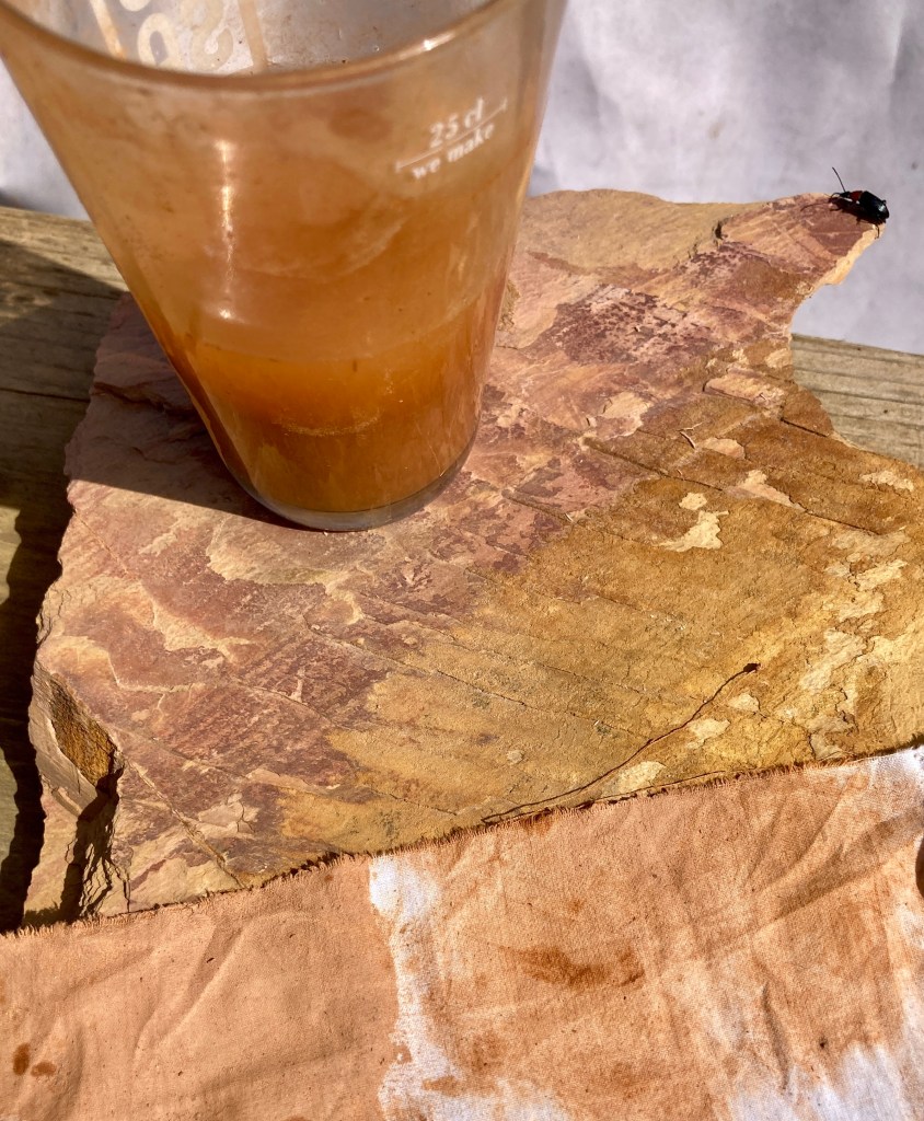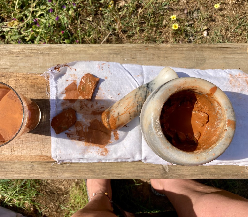 for mike’s bell tent we used it straight from the pestle bowl. adding concentrate from the wet pigment jar to moisten if needed ( see next stage below)