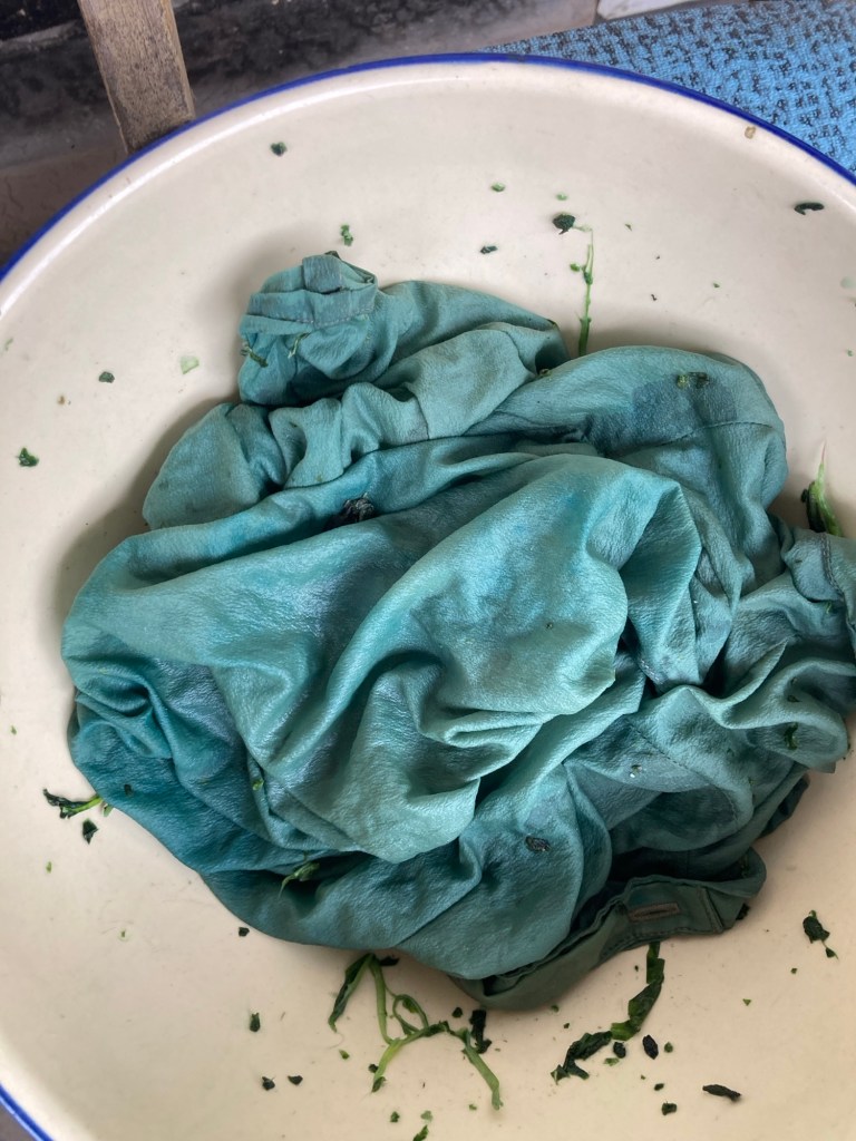in the quest for more seasonal and local dye practice, i’m playing with the fresh japanese indigo grown by Tracey, making n mending club member, at their allotment (my balcony being out of use this summer for cladding renewal!)