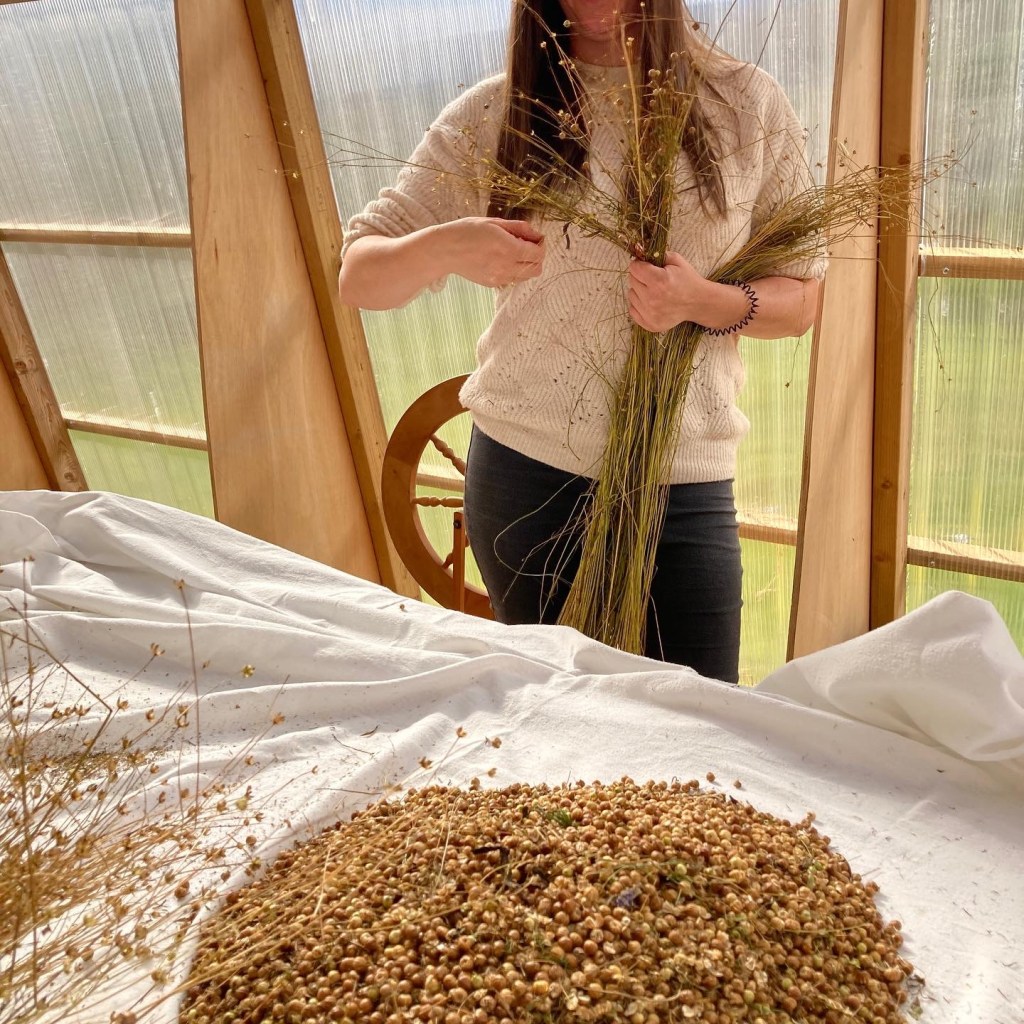 llieinwe project (tr. a piece of linen cloth) is about growing flax and processing it into basic linen yarn, as a community – learning and sharing skills to be self sufficient and sustainable in our textile choices.